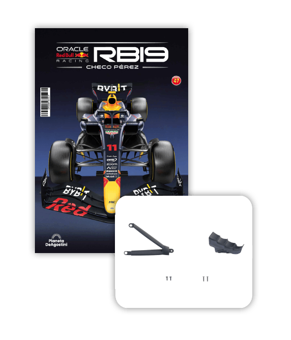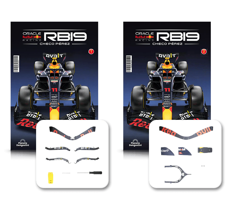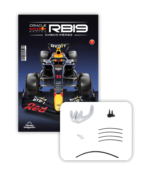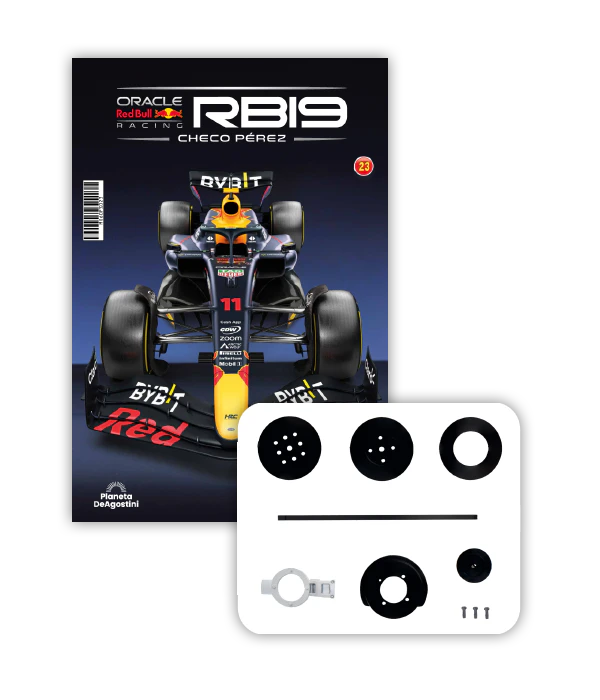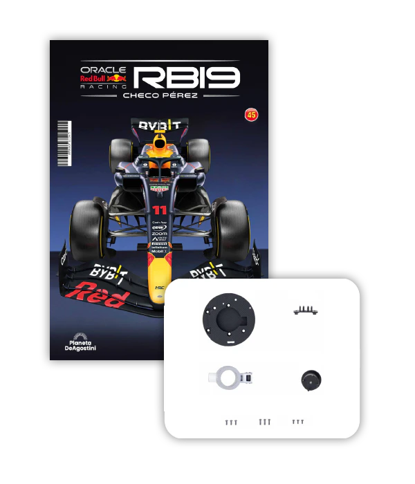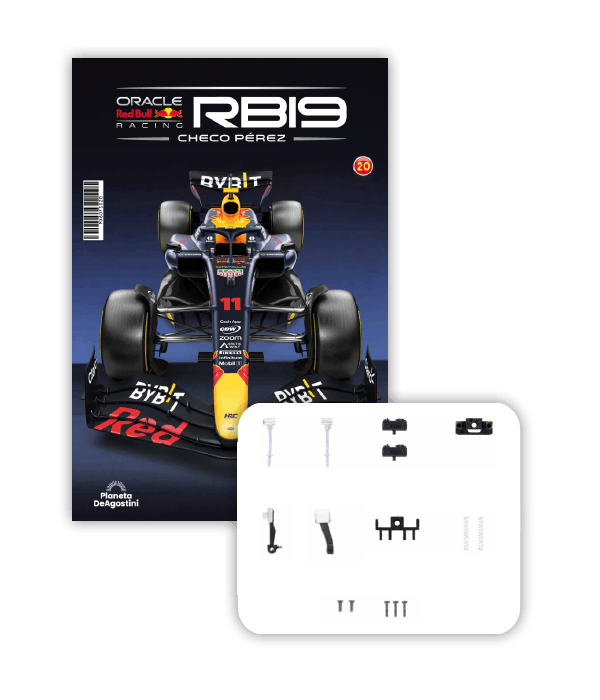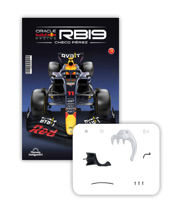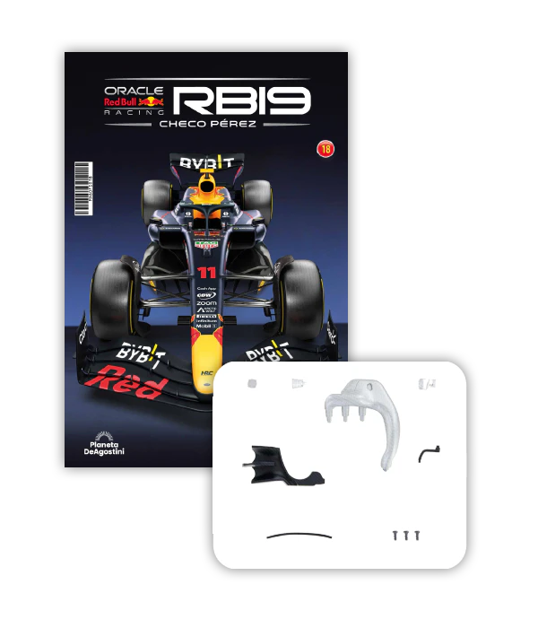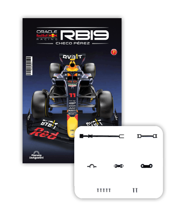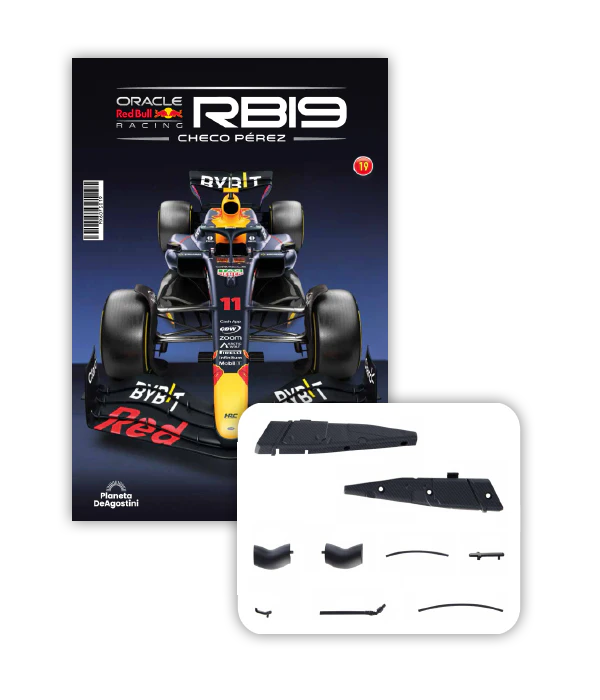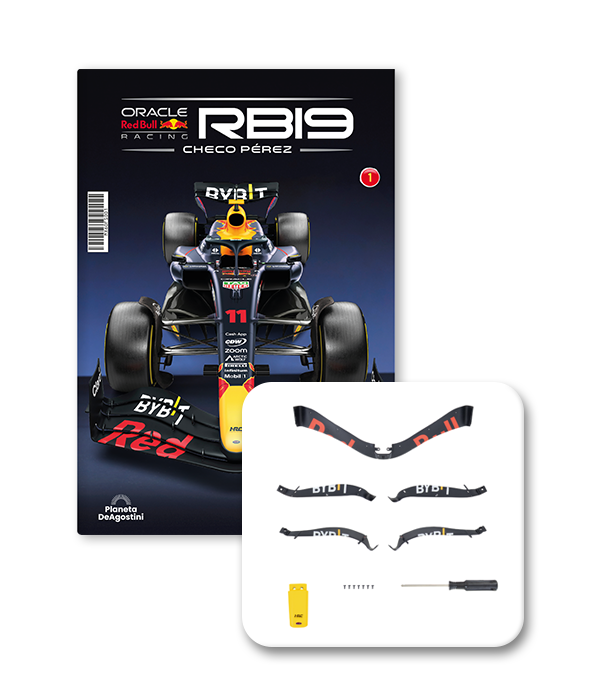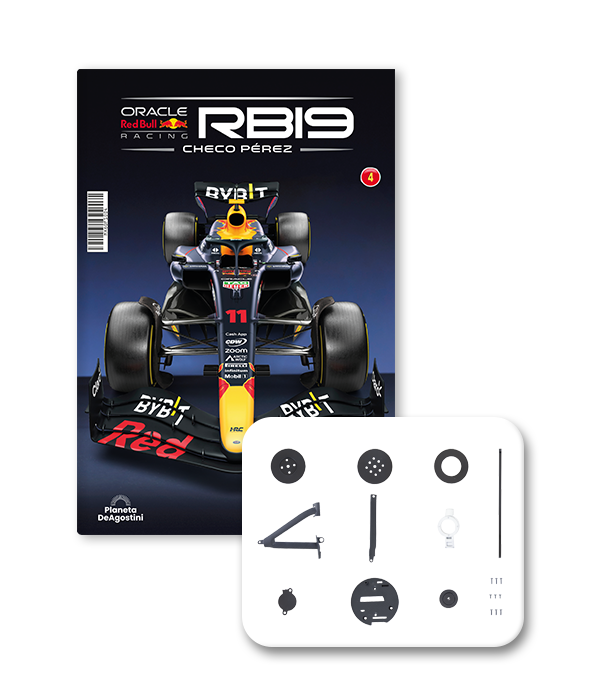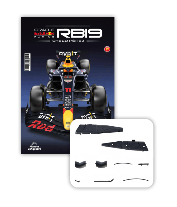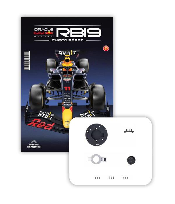 El RB19 de Oracle Red Bull Racing es una maravilla de la ingeniería y una auténtica obra de arte en movimiento, diseñada para maximizar la velocidad, la eficiencia y el control en cada curva de los circuitos más desafiantes del mundo. ¡Ahora tienes la oportunidad de construir paso a paso tu propio modelo a escala 1/8 del RB19 y de convertirte en un especialista en el mundo de la alta competición!