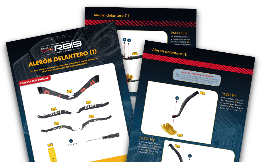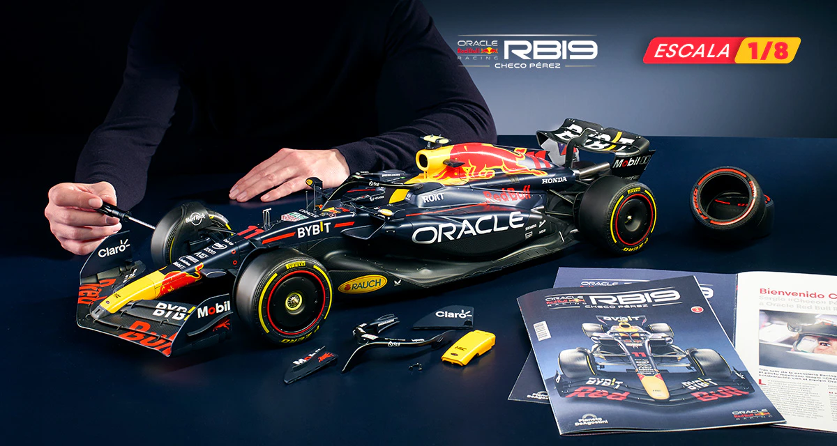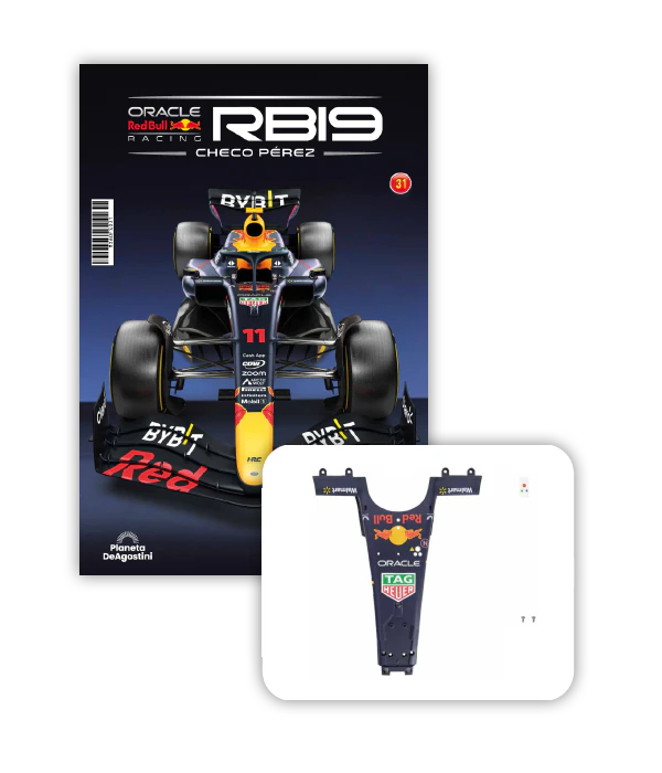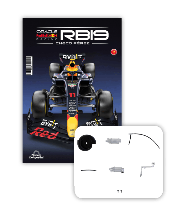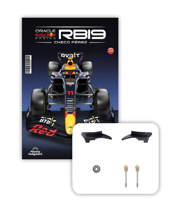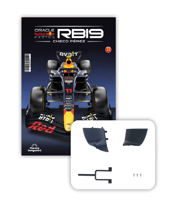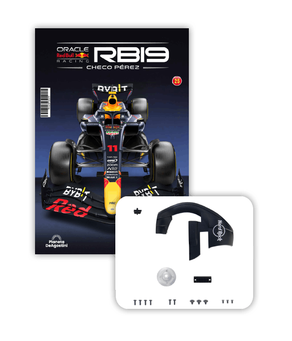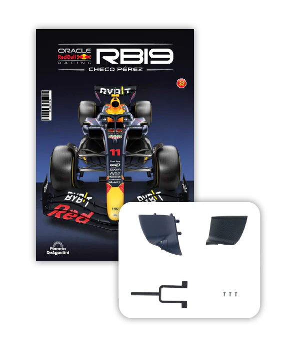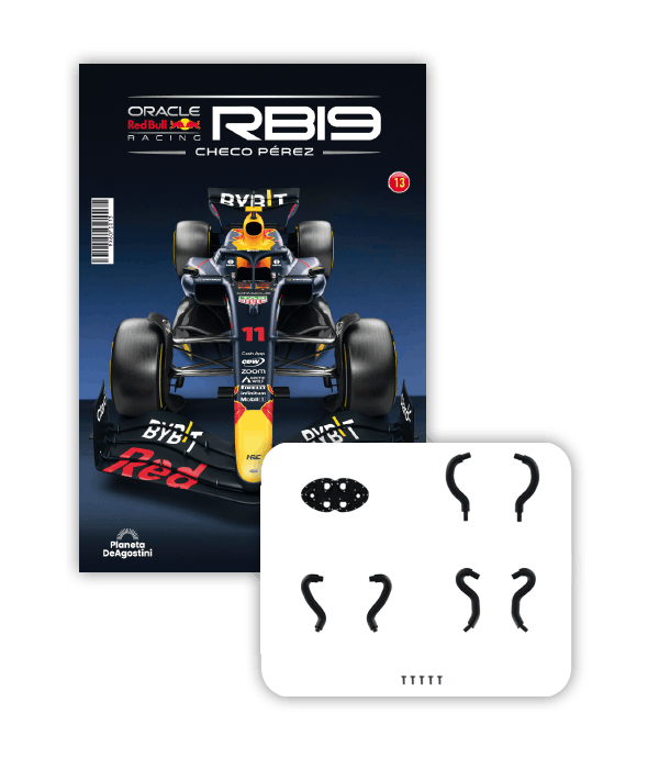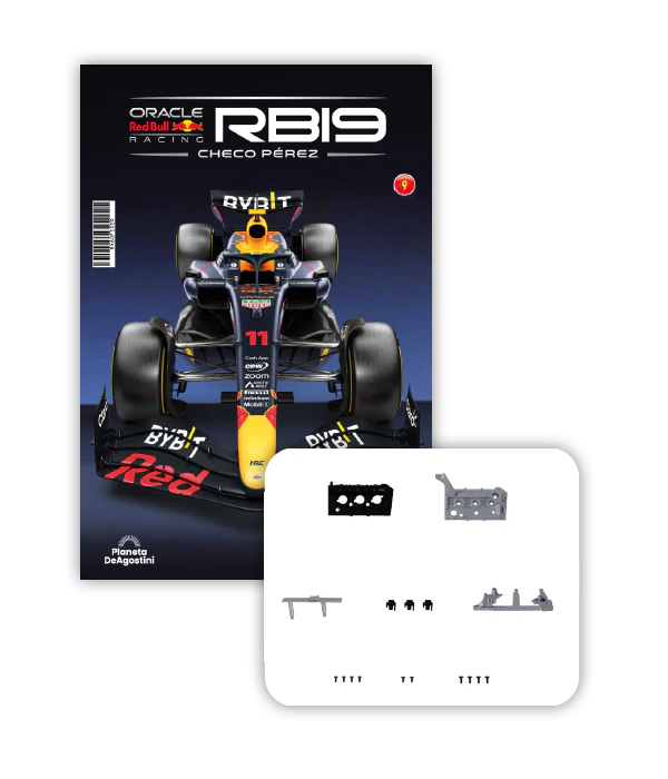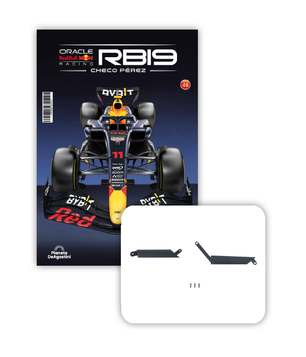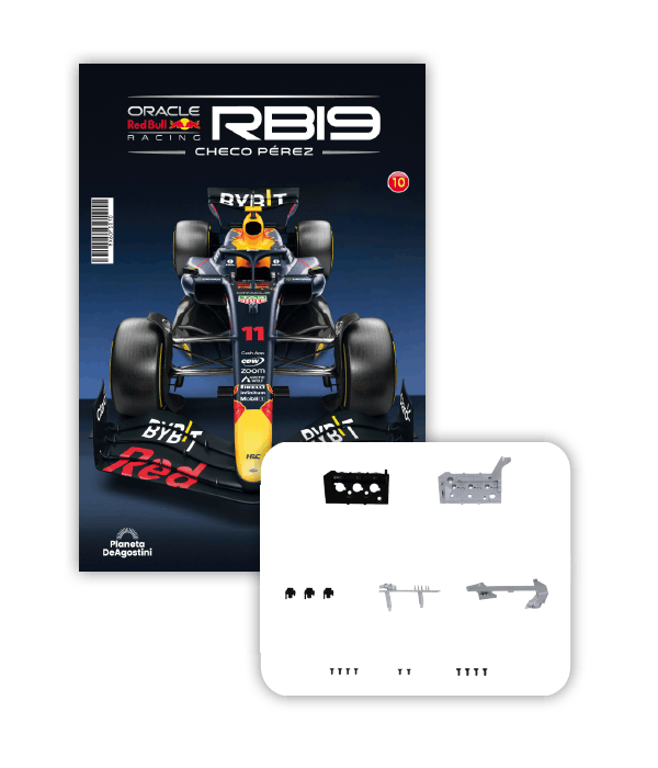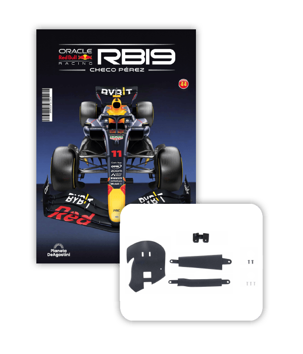 El RB19 de Oracle Red Bull Racing es una maravilla de la ingeniería y una auténtica obra de arte en movimiento, diseñada para maximizar la velocidad, la eficiencia y el control en cada curva de los circuitos más desafiantes del mundo. ¡Ahora tienes la oportunidad de construir paso a paso tu propio modelo a escala 1/8 del RB19 y de convertirte en un especialista en el mundo de la alta competición!