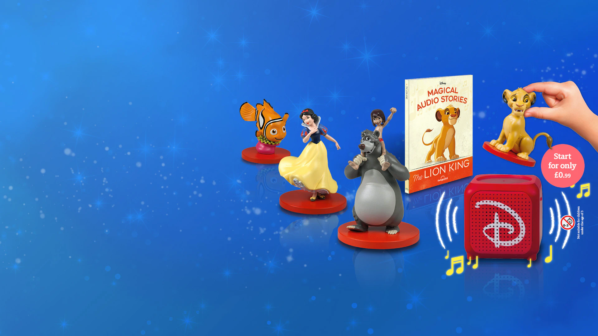 It’s the perfect combination! A beautifully designed collection of hardcover books featuring your favourite Disney & Pixar characters, accompanied by their fantastic figures. But that's not all. There's a bit more magic – just place the figure on the speaker and you'll hear your book's story read aloud!
