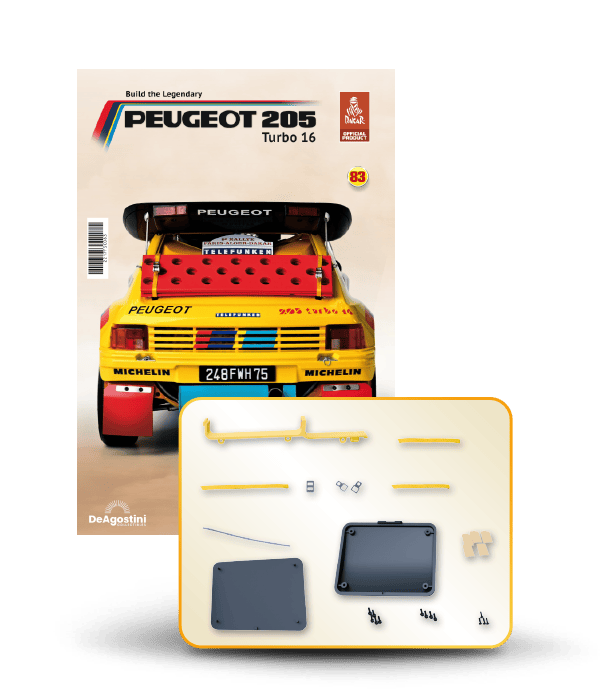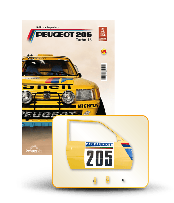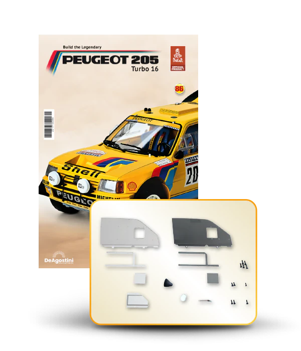 The Peugeot 205 Dakar model is complete in 110 assembly stages (parts to build and magazines).